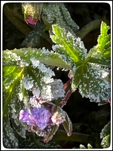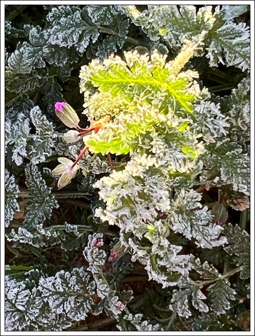 Clifford and I are camped on public land south of St. George, Utah.  We had thought to be traveling north by April, but our intended destination in northern Nevada is still too cold and and snowy. The morning temperature here on Black Rock Road is a chilly 31 degrees. The frost is so pretty on the filaree and creosote, I go straight outside to take photos rather than doing the morning routine. Perhaps it is a meditation in its own way.