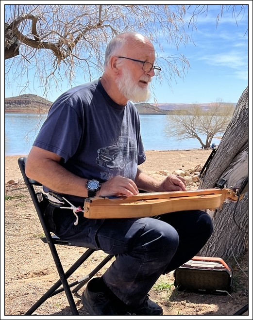 I sit out for coffee as it is warm enough to do so and it is not long before Clifford comes out with the dulcimer to sing and play in the sunshine.