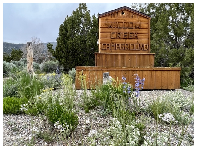 Arriving at Willow Creek Campground in the Wards Charcoal Oven Nevada State ParkWildflowers Greet Us