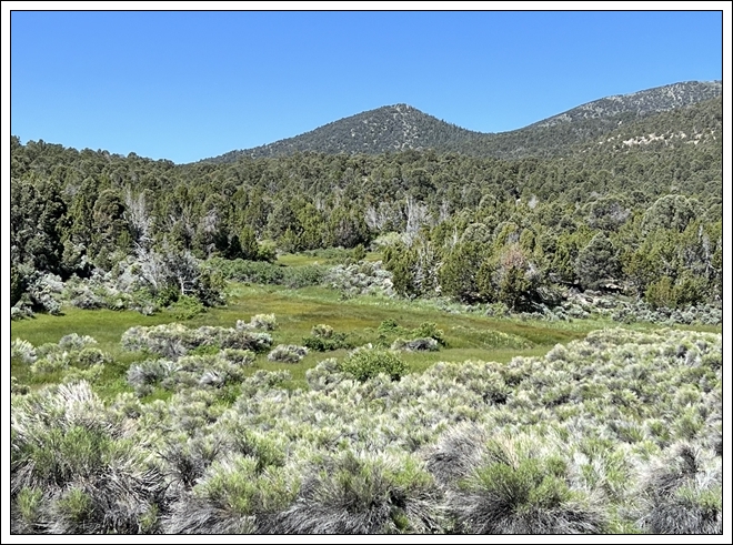 As soon as we are set up, I go on a walkabout to explore and take photos of the scenic landscape, our campsite, and all the wildflowers. Across the valley, I think we are seeing the Snake Range and perhaps Wheeler Peak and Granite Peak in the Great Basin National Park.