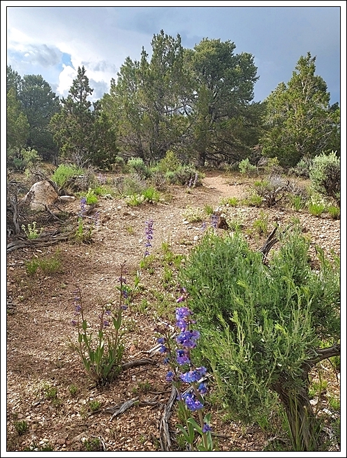 Saturday, May 27. So lovely this morning as I sit in the shade of one of the junipers with coffee and journals. I love my front yard with the junipers and so many wildflowers. The wildflowers are totally delightful, but as clouds and breeze increase, it becomes too windy for good photos. However, life is good and I am grateful to be here now.