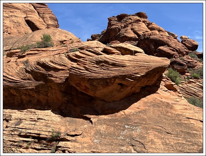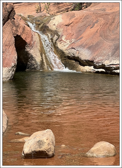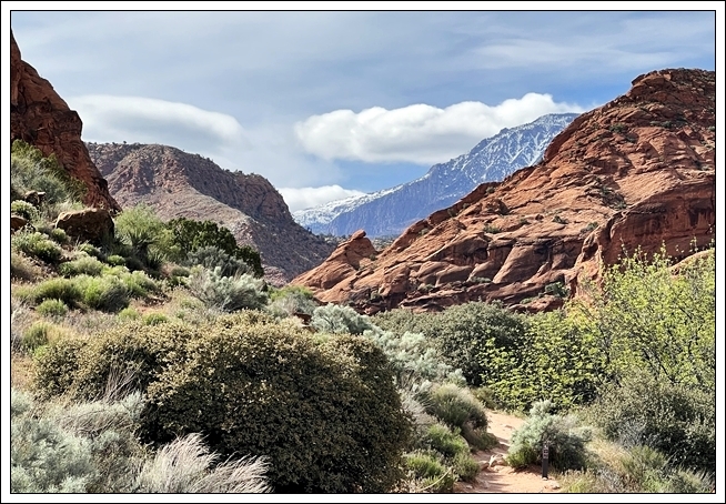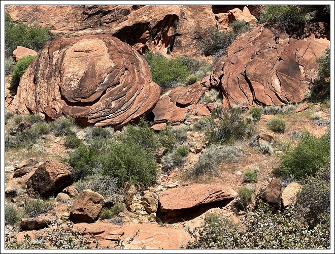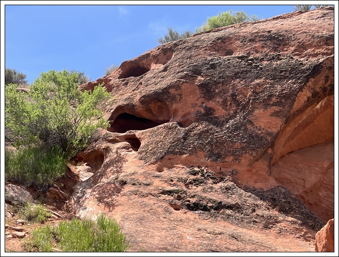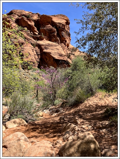 On the way back to Black Rock Road, we stop at Cedar Pockets, the rest area/campground where we met our nomad friend David several years ago, but which closed due to covid in 2020. It is open again, but this time of year almost no one is there. Clifford naps in the car while I hike the trail that goes from the campground down to the rest area. Hiking by myself gives me time to connect with the beauty of the day.